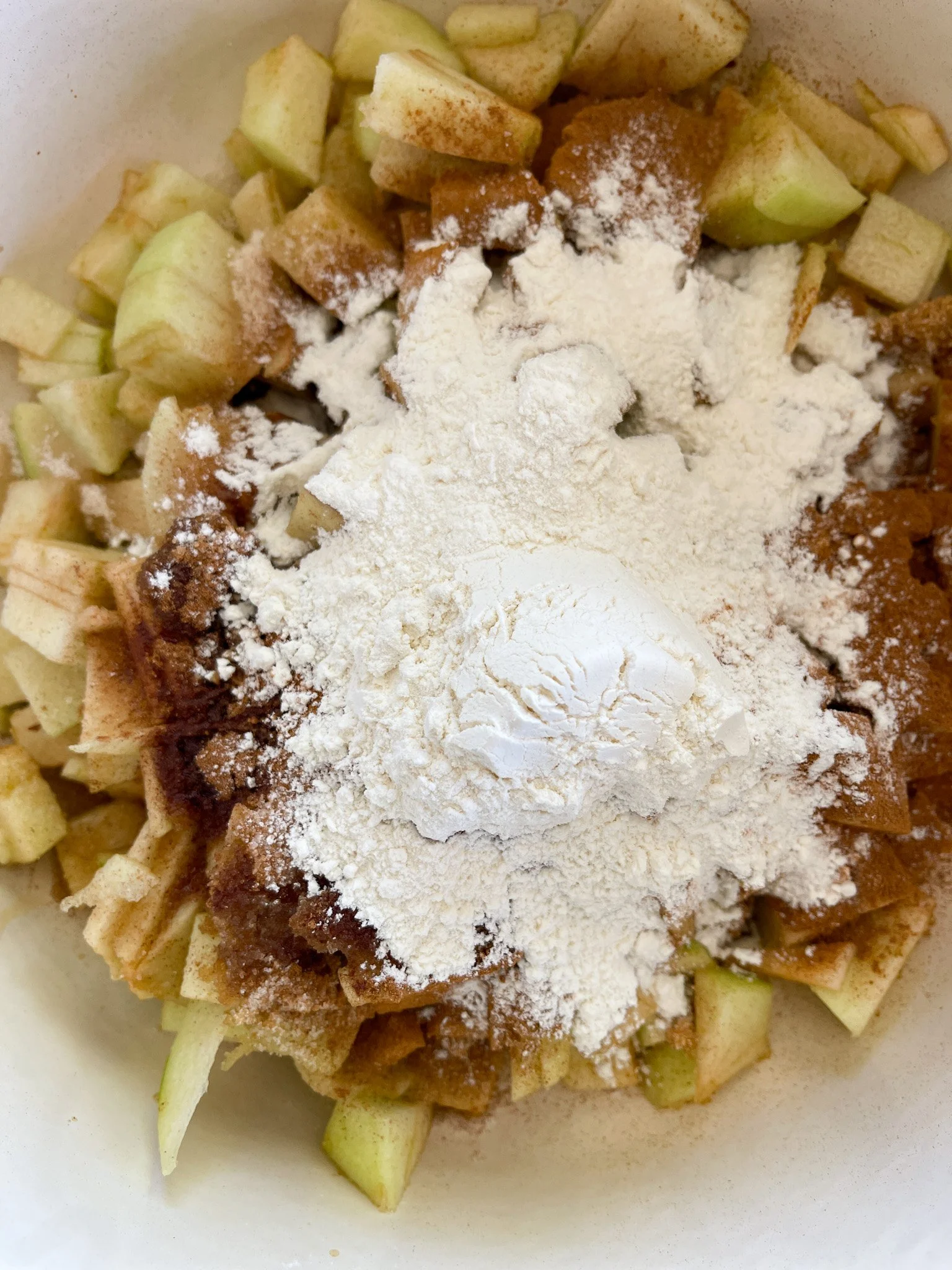 Stir all the ingredients well and let the mixture cook for 7 to 10 minutes, or until the sugar has dissolved and the apples have softened a bit (you want them to be fork tender, but not mushy).