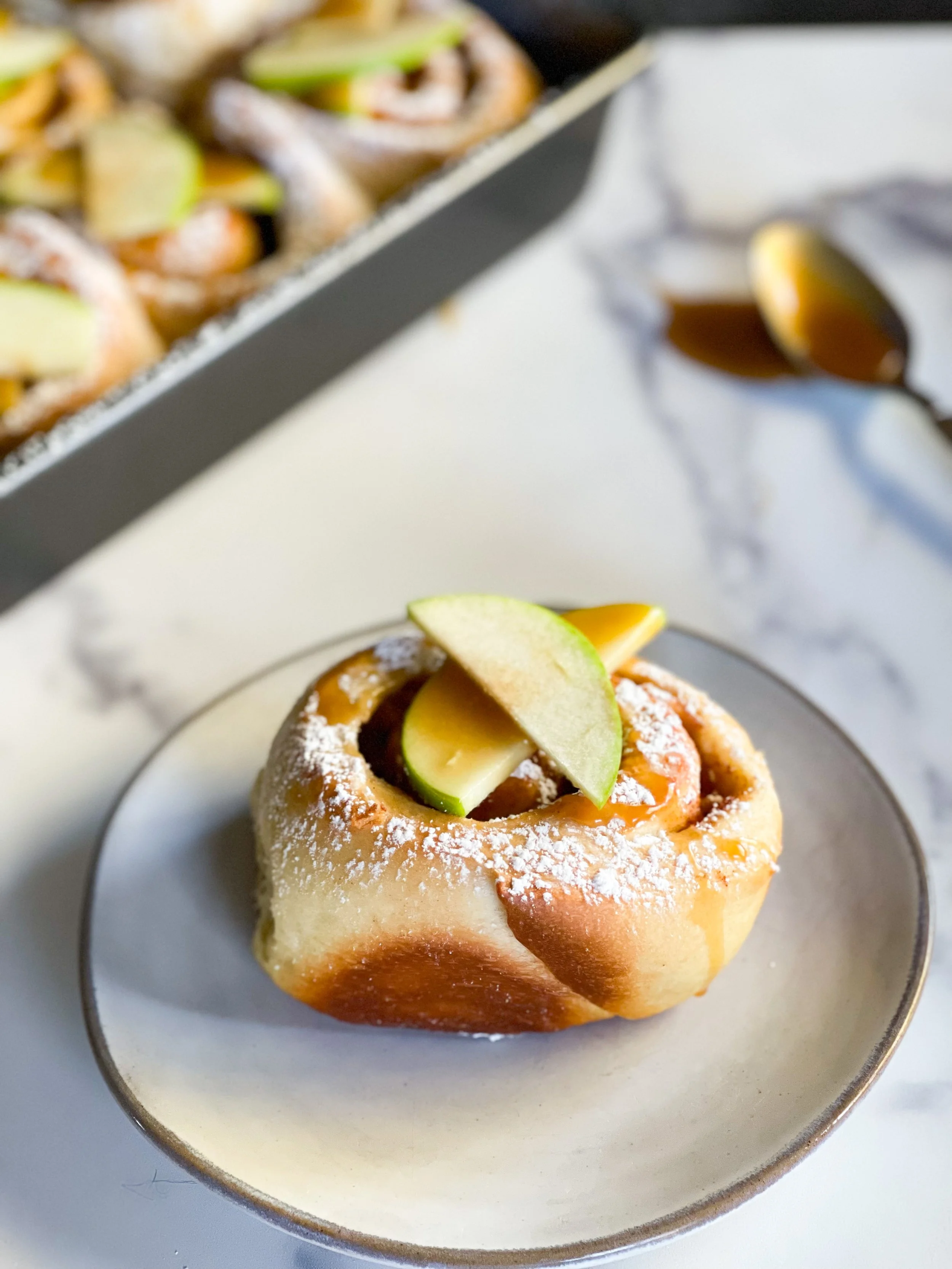 Salted Caramel- I think we all know that salted caramel and apples are a match made in heaven, but if you don’t like caramel or the thought of making it freaks you out- you can totally skip it. When the rolls come out of the oven, just dust them with some powdered sugar and they will be really delicious sans caramel.